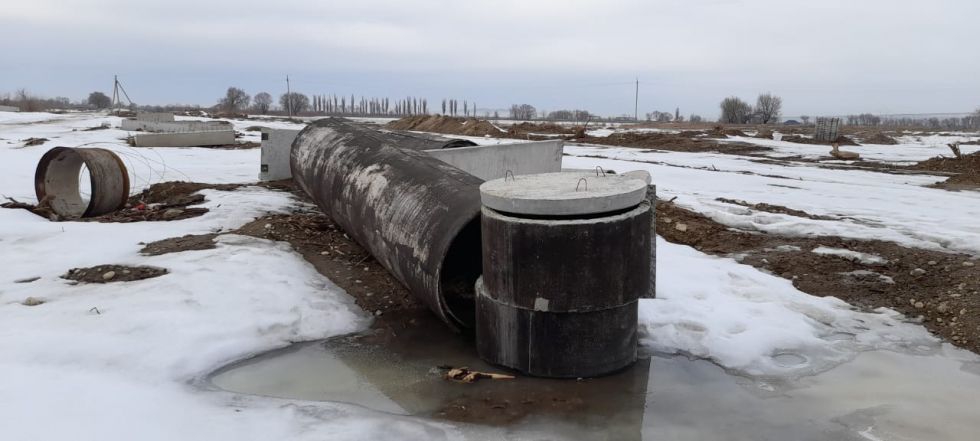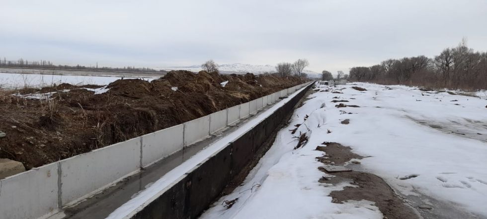 Сегодня по каналу Шымыр, его длина 18 км, лотки установили только на 1,2 км. Ещё 9 км надо сделать.