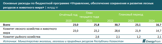 В то же время Министерство экологии, геологии и природных ресурсов Республики Казахстан осуществляет деятельность в рамках бюджетных программ, одной из которых является бюджетная программа № 256 «Управление, обеспечение сохранения и развития лесных ресурсов и животного мира».
