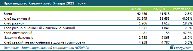 В январе текущего года в РК произвели 42,5 тыс. тонн хлеба — на 2,3% больше, чем годом ранее.